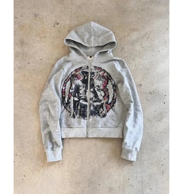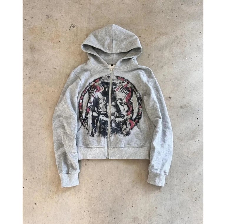 This zip-up hoodie combines comfort and style in a unique way, standing out thanks to its bold and eye-catching graphic design.